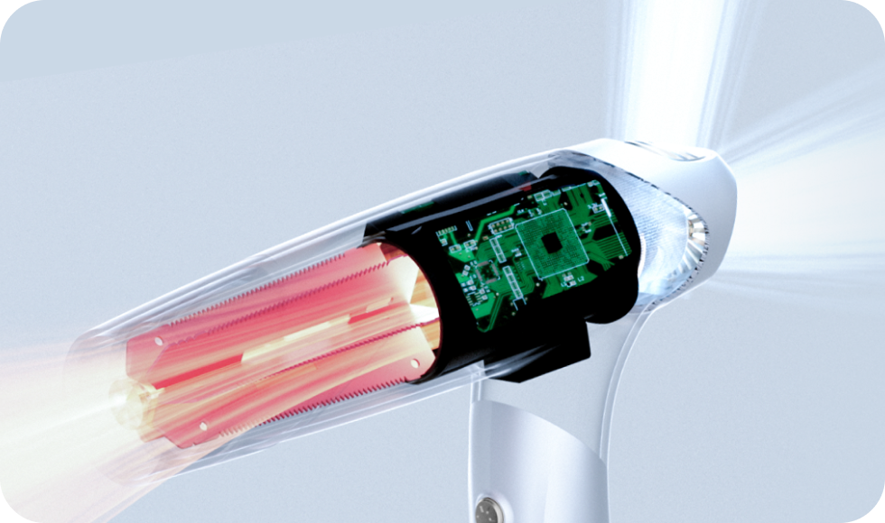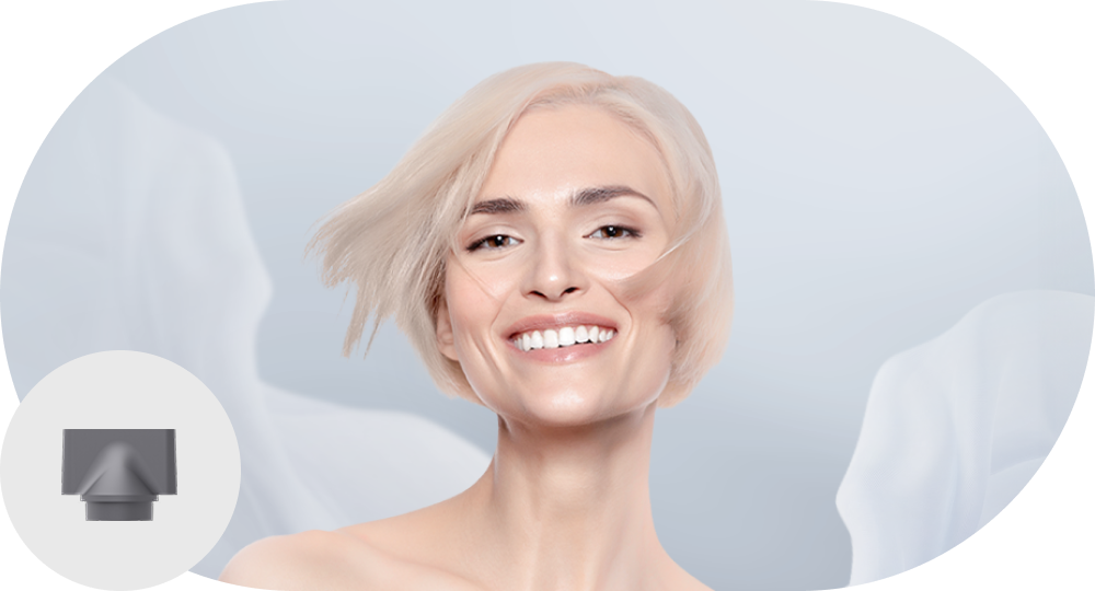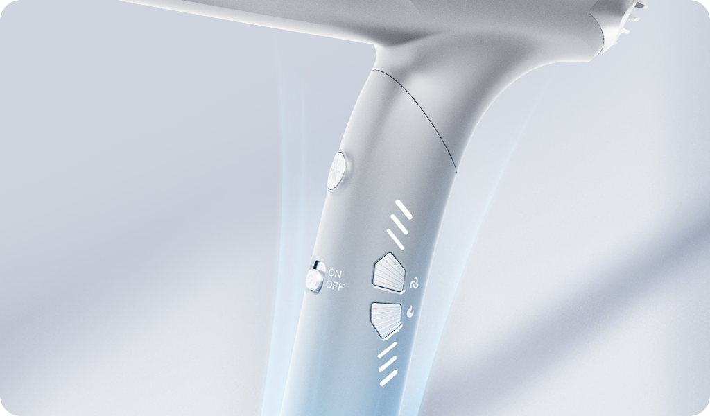 Dry hair quickly with a powerful 1400W brushless motor and the exclusive V-Shape Airflow System, which distributes heat evenly, reduces noise, and minimizes heat damage. The intelligent temperature control maintains optimal heat level for consistent results.