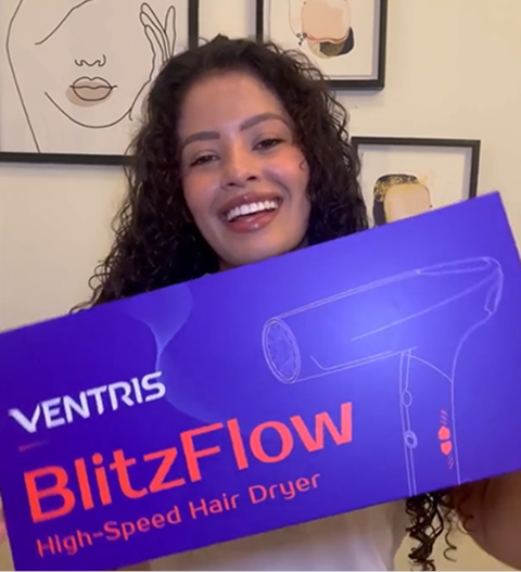 VENTTRIS BlitzFlow’s patented NeutroCare technology generates over 250 million ions, eliminating 99% of static for smoother, sleeker hair.