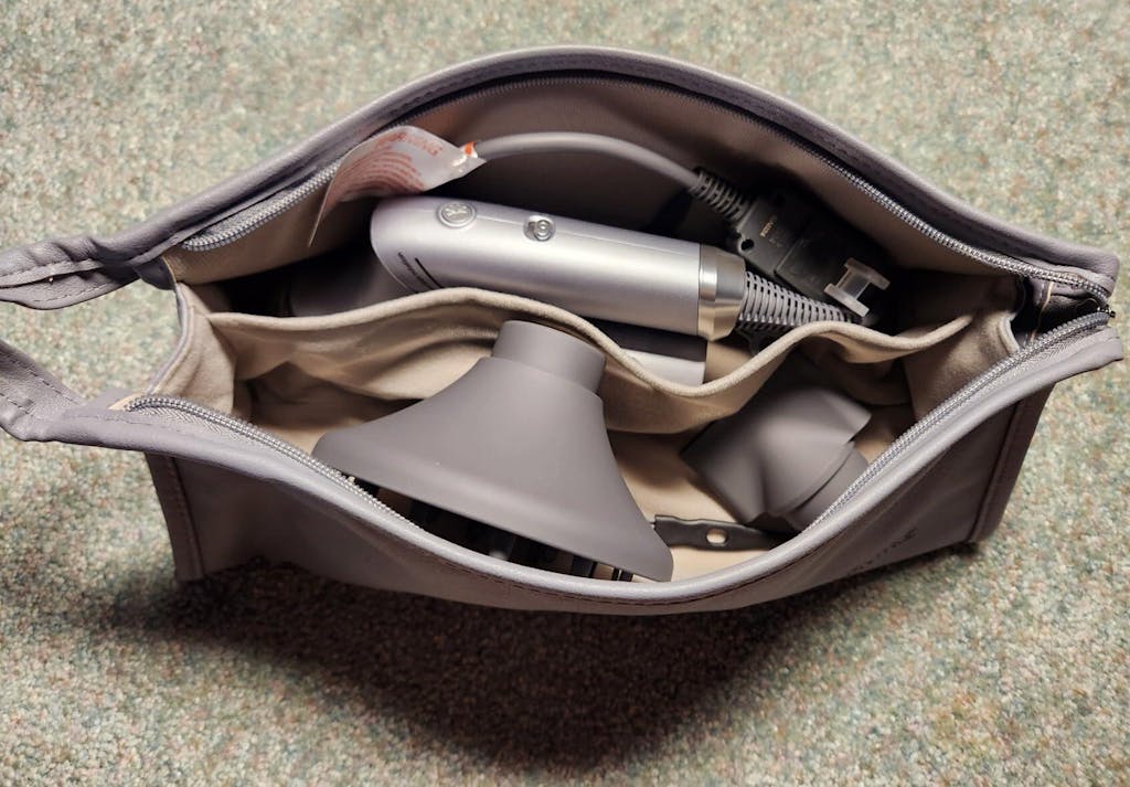 Weighing under 1 pound, this blow dryer is compact and easy to hold. Its ergonomic design reduces hand fatigue, and the travel pouch makes it ideal for styling at home or on the go.